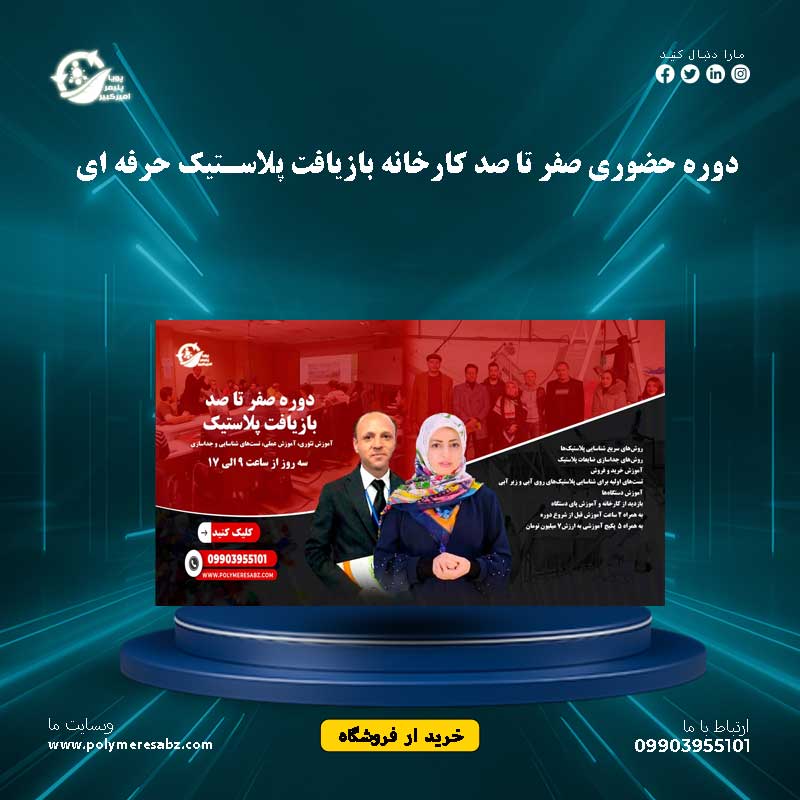 حضور در دوره کارخانه بازیافت پلاستیک شروع همکاری ما و شما است تیم پلیمر سبز در انتخاب و خرید ضایعات, انتخاب دستگاه و فروش ضایعات, نحوه بودجه بندی و سرمایه گزاری شما را پشتیبانی و حمایت می کند.